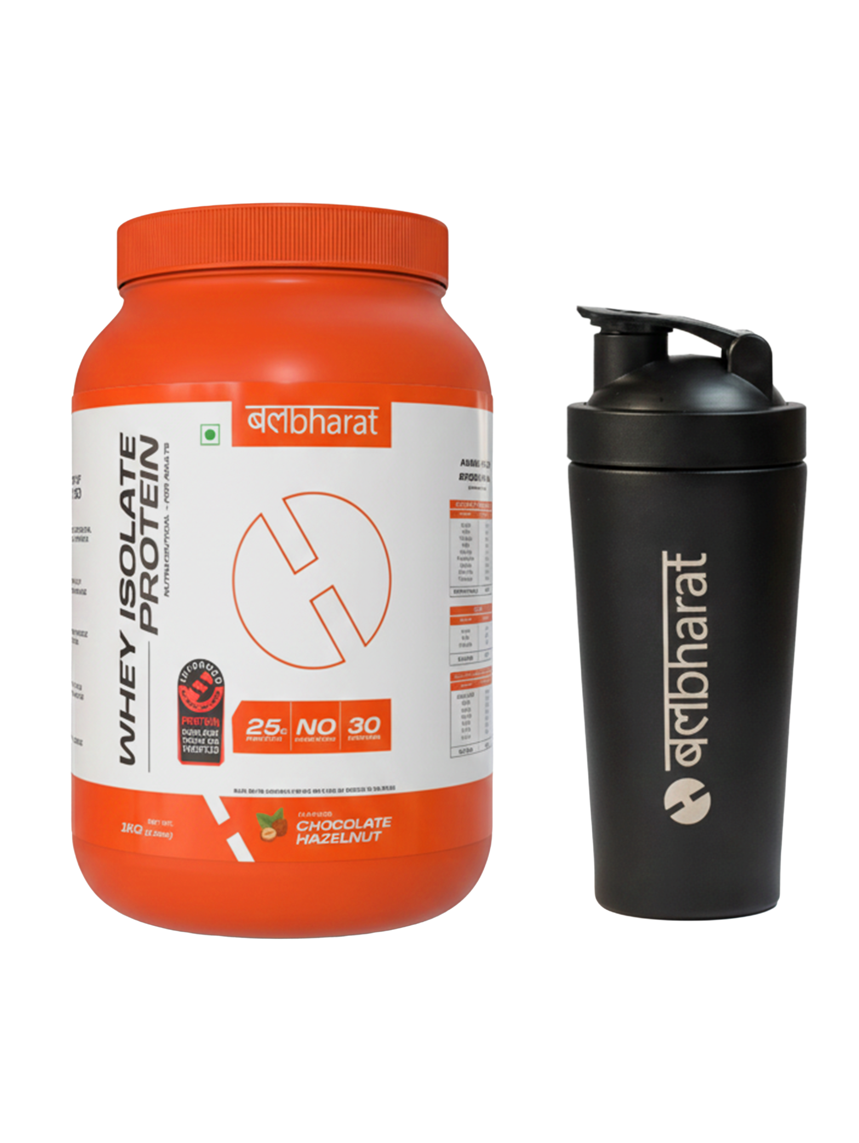 Bal Bharat Whey Protein Isolate | 25g Protein, 1kg (2.2lbs) | 100% Isolate and Metal shaker