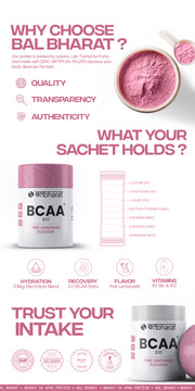 Bal Bharat BCAA 2:1:1 | 10g Per Serving, Pink Lemonade, Pouch | L-Leucine, L-Isoleucine, L-Valine, Recovery & Endurance