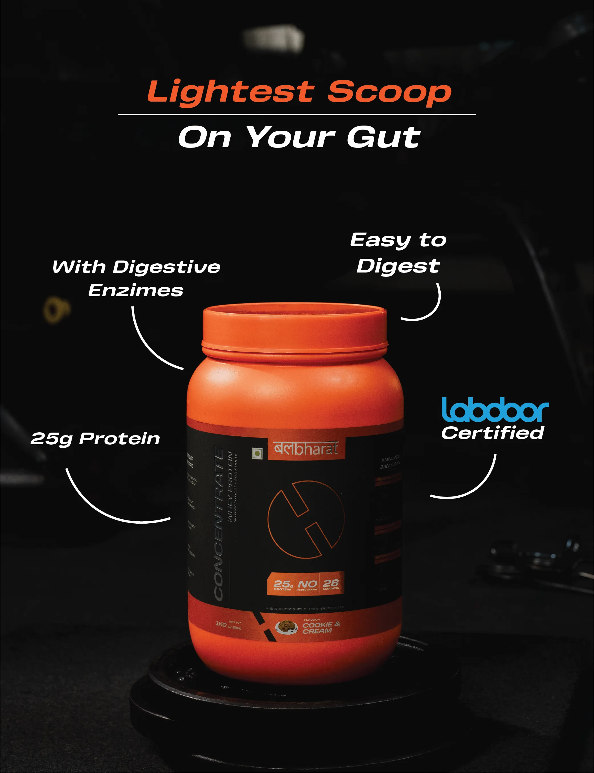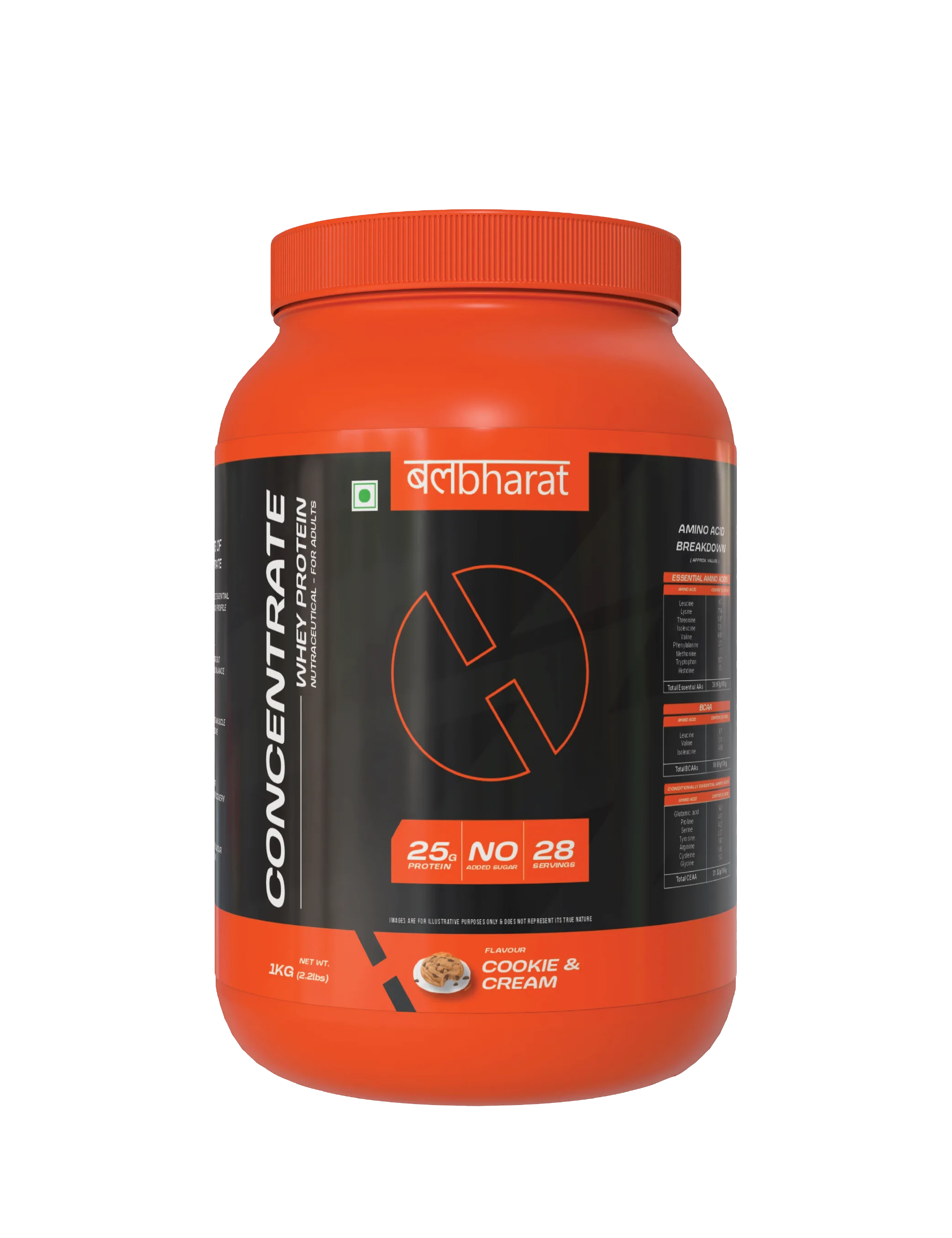 Bal Bharat Whey Protein Concentrate | 25g Protein, Cookies an Cream, 1kg (2.2Lbs) | 80% Protein, Digestive Enzymes